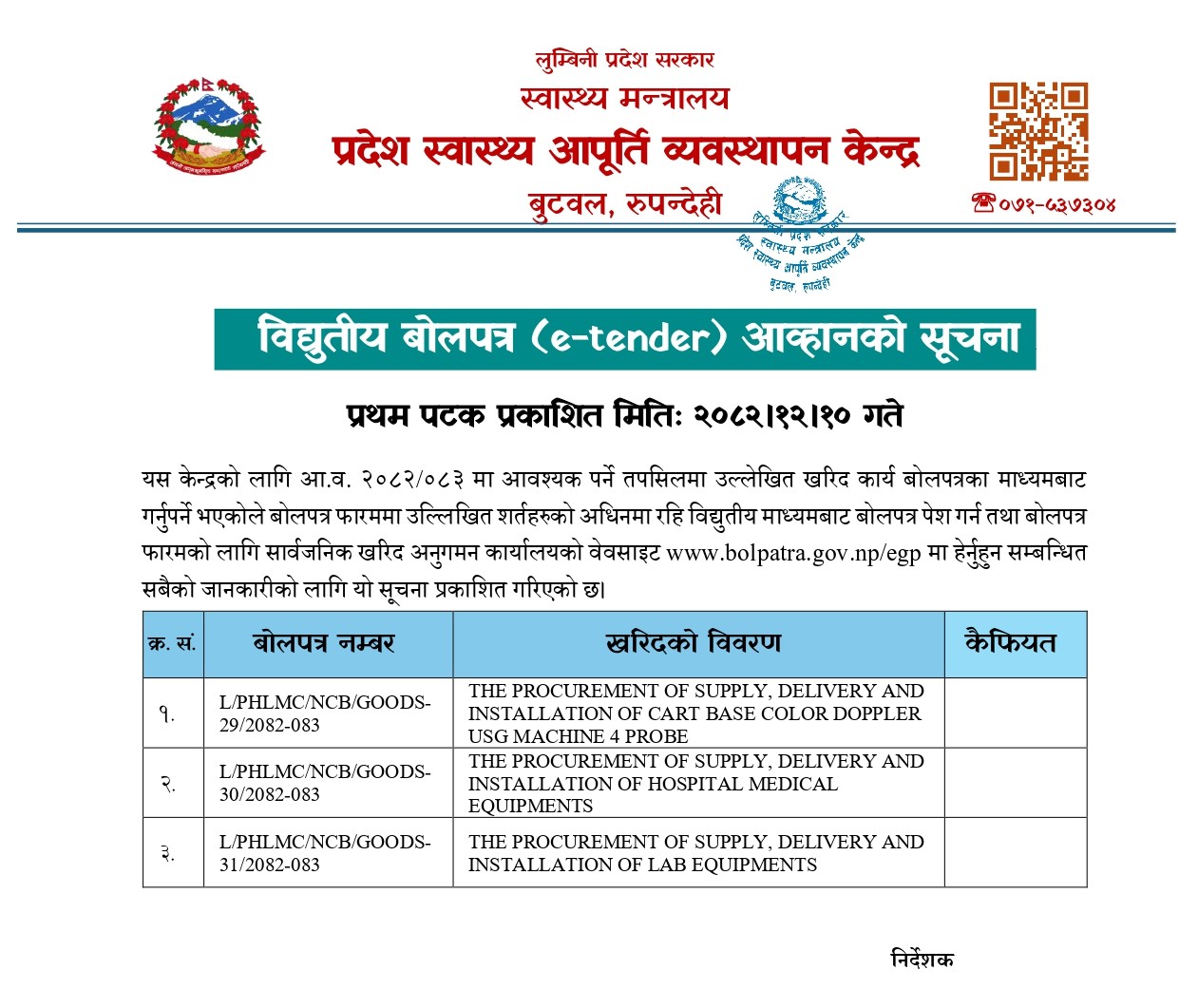 विद्युतीय बोलपत्र (e-tender) आव्हानको सूचना