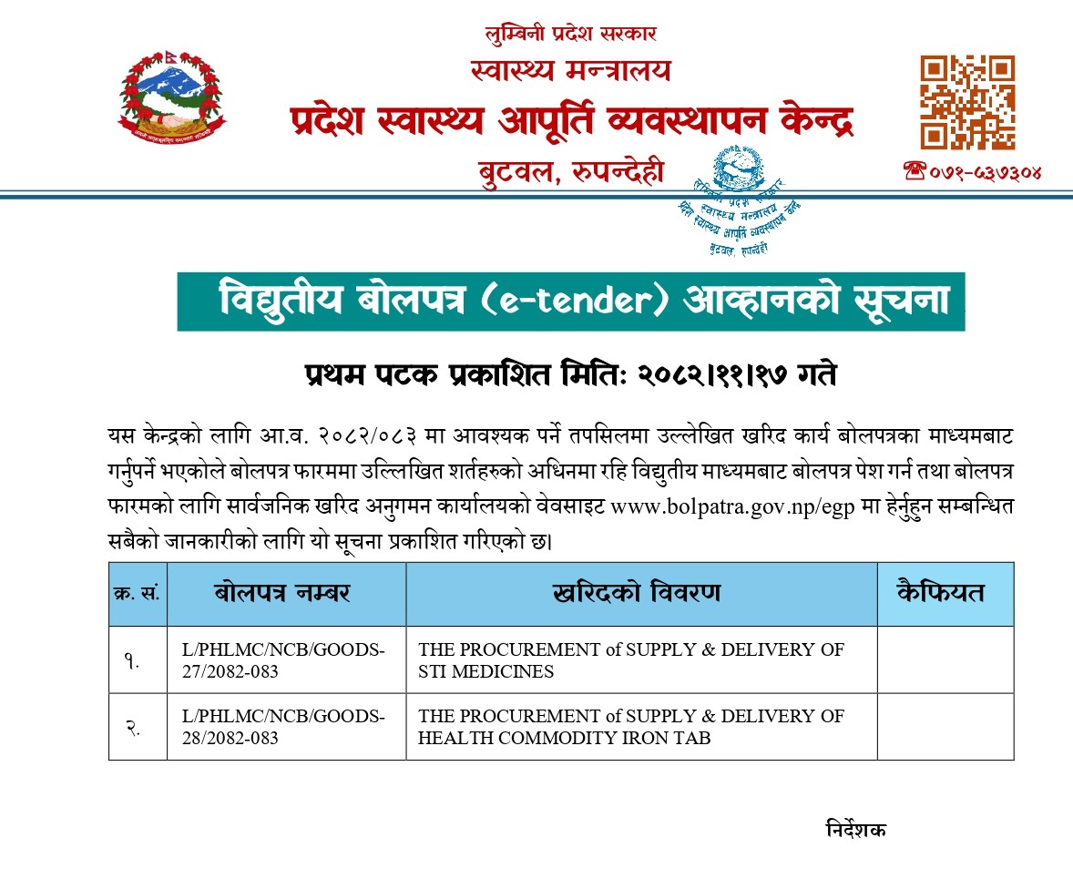 विद्युतीय बोलपत्र (e-tender) आव्हानको सूचना