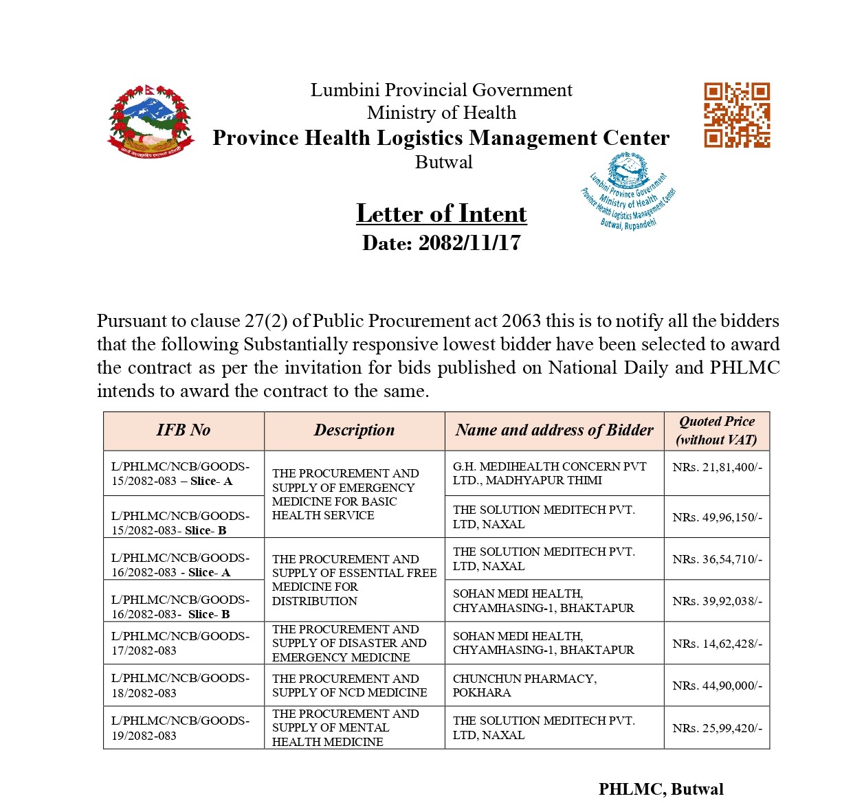 सिंहदरवार वैद्यखाना विकास समिति, काठमाडौंबाट औषधि खरिद गर्ने सम्झौता सम्बन्धी सूचना ।